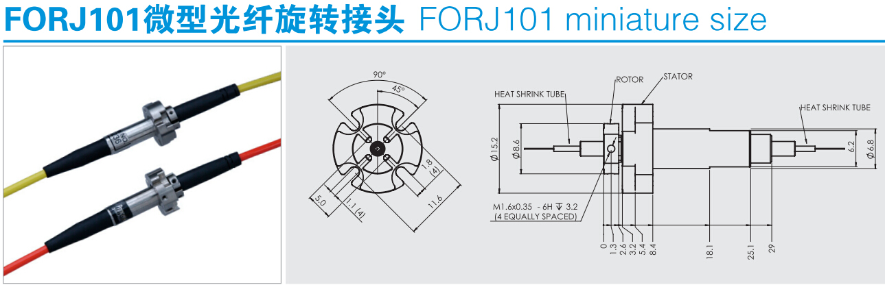 FORJ101光纖旋轉接頭用于單?;蚨嗄O到y的光電旋轉連接;完全的雙向旋轉;與現有的電氣滑環設計相融合;全封閉結構;能為客戶量身定制所需要的光纖滑環