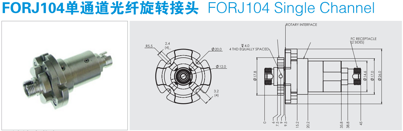 FORJ104單通道光纖滑環(huán)用于單模或多模系統(tǒng)的光電旋轉(zhuǎn)連接;完全的雙向旋轉(zhuǎn);與現(xiàn)有的電氣滑環(huán)設(shè)計相融合;全封閉結(jié)構(gòu);能為客戶量身定制所需要的光纖滑環(huán)