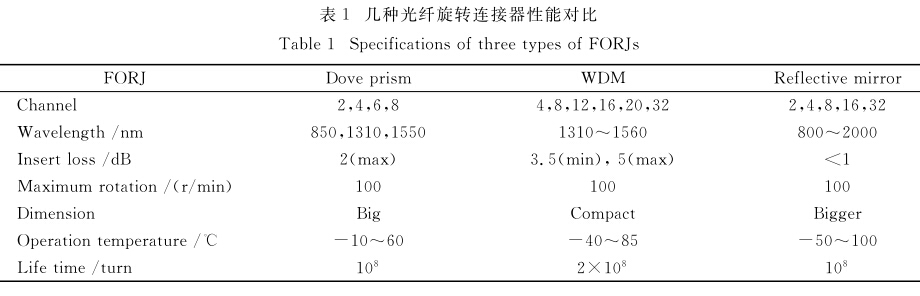 經(jīng)過近30年的發(fā)展,技術(shù)上已經(jīng)取得了很大的進(jìn)步,并趨于成熟。 對光纖旋轉(zhuǎn)連接器的主要功能及其最新進(jìn)展進(jìn)行了綜述,介紹了道威棱鏡式、波分復(fù)用式和反射鏡式3類多通道光纖連接器的原理、技術(shù)和特點(diǎn),對3類系統(tǒng)進(jìn)行了比較,列出各類連接器的優(yōu)缺點(diǎn)。 最后對光纖滑環(huán)適用場合進(jìn)行了簡要介紹。
