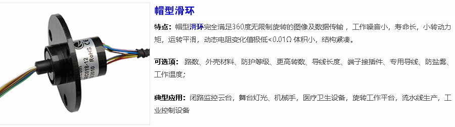 導電滑環作為高速球中一個重要的關鍵零部件,確保在360度不間斷高速旋轉下完成數據傳輸,并且保證數據的完整性、傳輸的快速性。由于高速球內部空間有限,對導電滑環大小要求嚴格,我公司根據不同型號的高速球機,設計出外徑分別有12mm、15mm、16mm、18mm、22mm的SRC帽型滑環。特別是我公司生產的SRF022高清滑環系列,該滑環是專門為滿足高速串行數字信號或模擬信號傳輸而開發的產品,可適用于1080P、1080I等HD-SDI高清視頻信號傳輸,傳輸速率可達3Gbps/3GHz或更高。該款產品包含1路高頻信號通道和8或12路常規信號通道,高頻信號采用的是50Ω/75Ω特性阻抗射頻同軸結構,配MMCX、SMA、MCX、BNC、SMB接頭(其他指定接插件可轉接,導線規格RG174、RG178、RG179、RG316等可選);常規信號通路可用于電源、控制信號或其他低頻信號的傳輸。 ![]() |